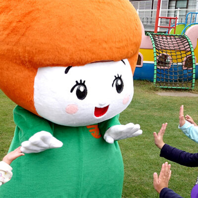 きょうは夏まつり!ちべん保育園の学童保育所、ほほえみクラブのみなさんが、5歳児クラス(ききょう組)と4歳児クラス(ひまわり組)をご招待。楽しい夏まつりをしてくれました。会場の講堂には、楽しそうなお店屋さんがたくさんならんでいます。