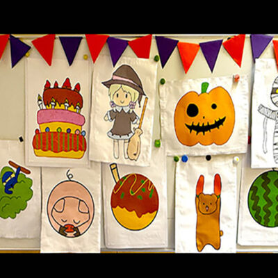 今回、竜宮城の神秘的な雰囲気をパステルで表現しました。さらに、パステルの上に墨汁で海の中の様子を描きます。パステルと墨汁の取り合わせでおもしろい絵になりました。お家でも色んな絵の具を使って絵を描いてみてください。
