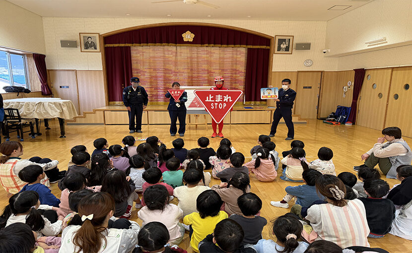 5歳児クラス(ききょう組)の幼年消防クラブ卒団式を行いました。5歳児クラスのみなさんは、一年間、幼年消防クラブ員として消防署の防火啓発活動のお手伝いをしてきました。一年間の活動が終わり、今日で卒団になります。卒団の後も、火遊びをしないなど幼年消防クラブで学んだことを忘れないでくださいね。