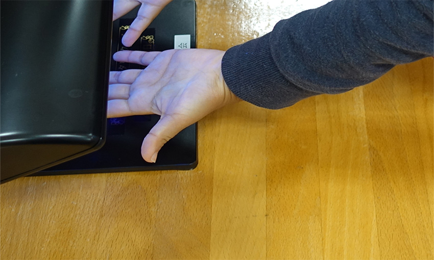 これは手洗いチェッカーです。手洗いがしっかりできているかを調べるものです。