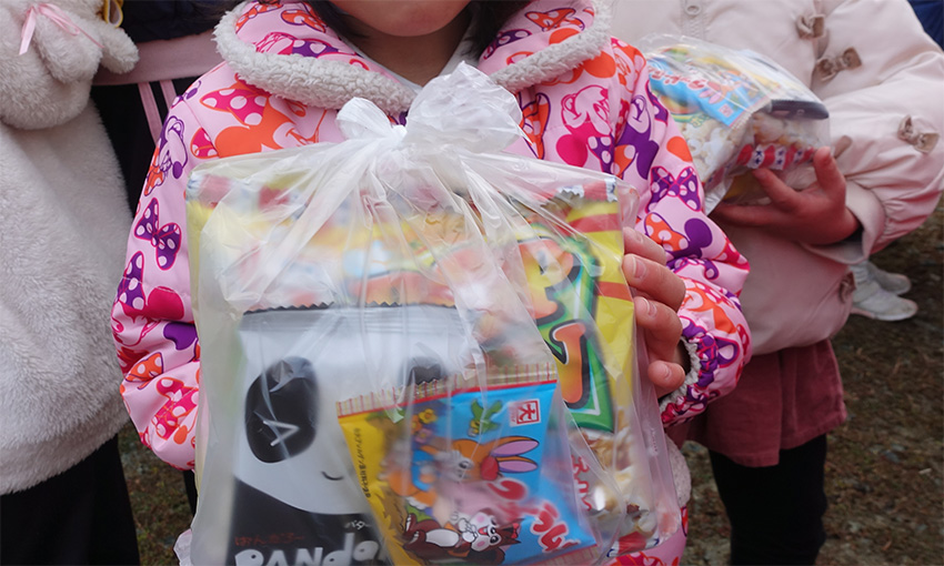 お参りのおみやげとして、上ノ段自治会より、園児全員にお菓子をいただきました。