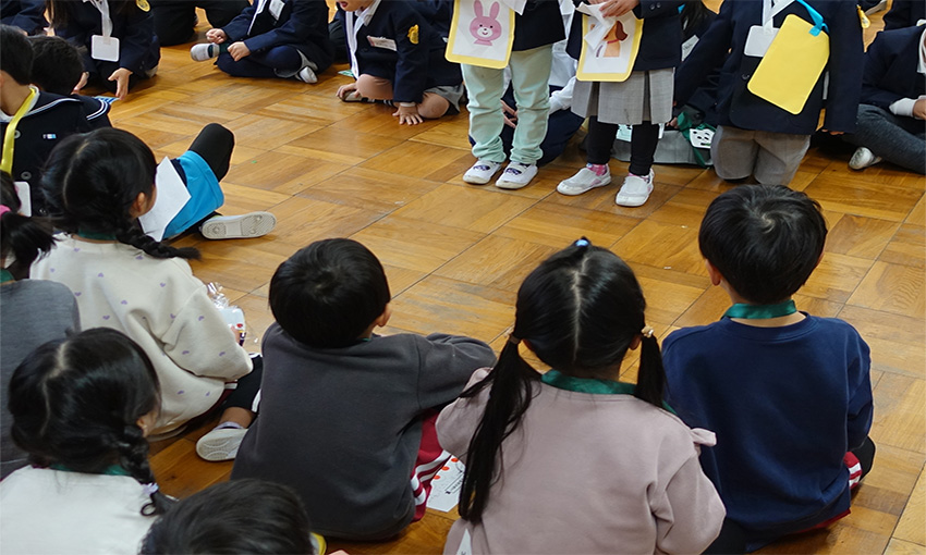 ききょう組(5歳児クラス)さんは、もうすぐ小学生になります。小学校はどんなところなんでしょう?おとただちはたくさんできるかな?4月が近づいてくるとワクワクとした気持ちが大きくなりますね。でも、ちょっと心配になることも・・・・。そんなききょう組さんに南小学校の一年生から「いっしょに遊ぼ!」とお誘いが届きました。