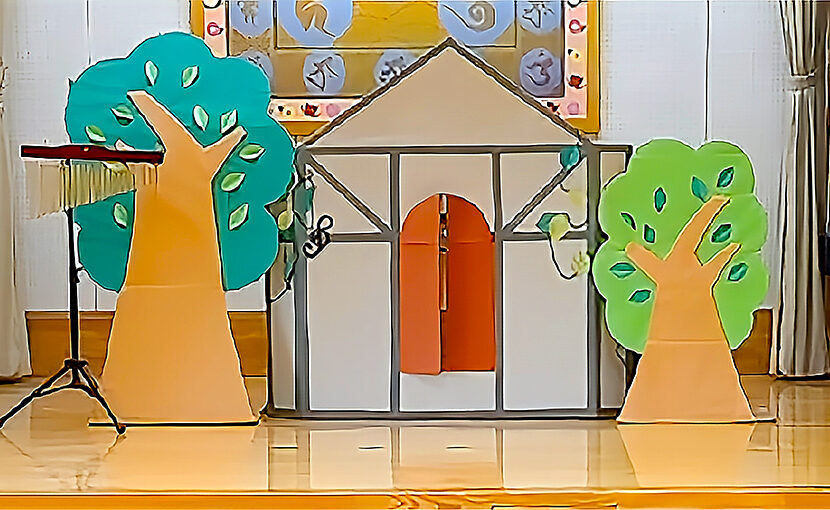 お楽しみ会は、すみれーずのみなさんの劇です。お腹がすいて元気のないぞうさん。でも仲間の動物たちがやってきて元気になっていきます。お話が進むと、ぞうさんと仲間の動物たちは、魔法使いに魔法をかけられて動物になったことがわかってきます。魔法をとくには、みんなが協力してなにかをすると魔法がとけてもとの姿にもどるのだとか。無事に魔法がとけて、みんなはきれいなお姫さまに・・・?とっても楽しい劇でした!